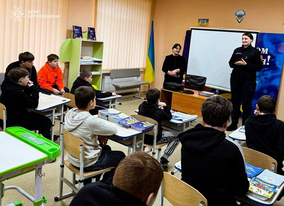 Напередодні різдвяних свят офіцер-рятувальник Бериславського району провів профілактичну бесіду для учнів та педагогів місцевих шкіл.