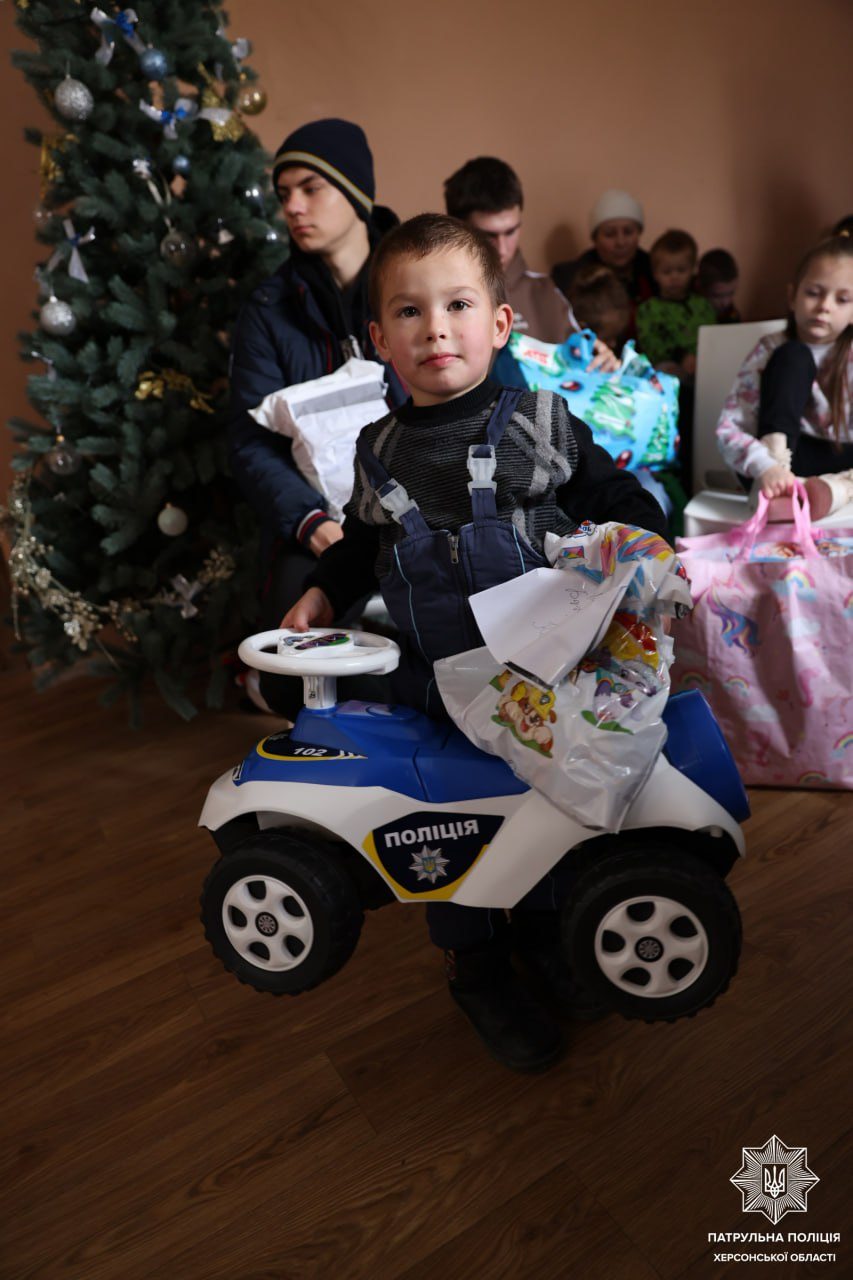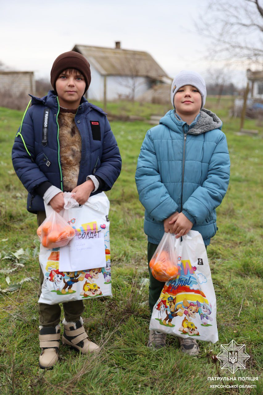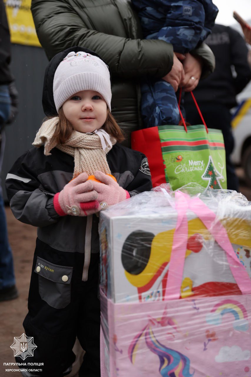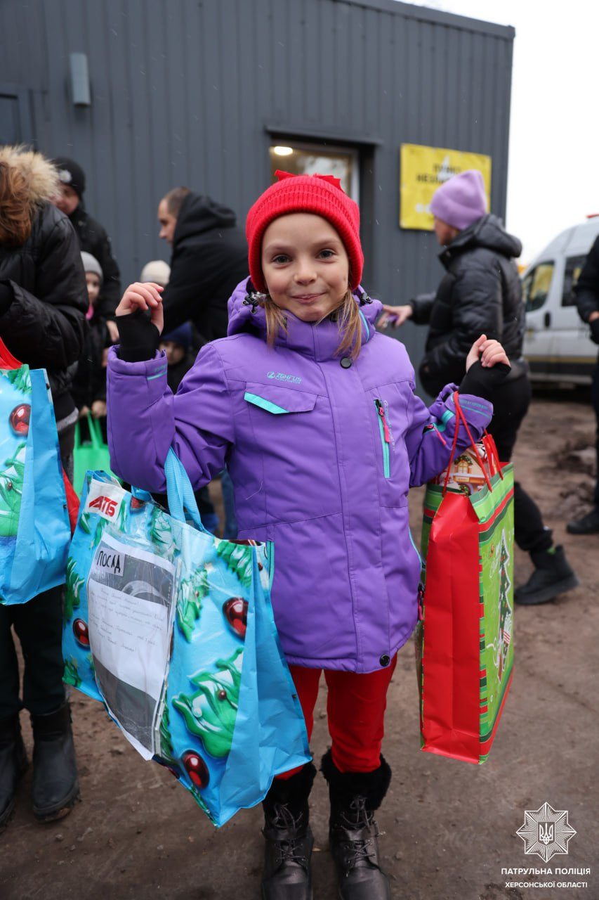На Різдво подарунки передали Управлінню патрульної поліції Херсонської області. Херсонські патрульні, своєю чергою, доставили їх дітям, подарувавши їм радість, щирі емоції та відчуття свята.