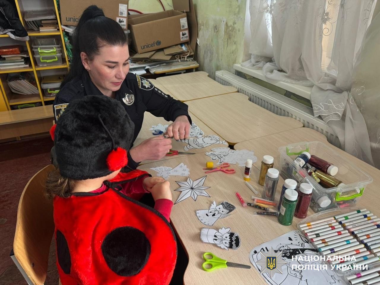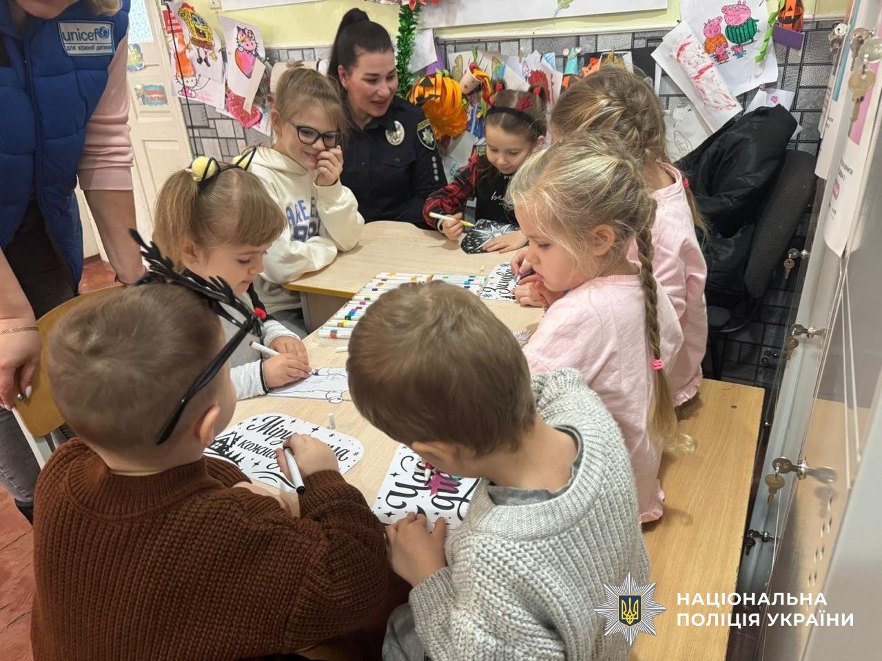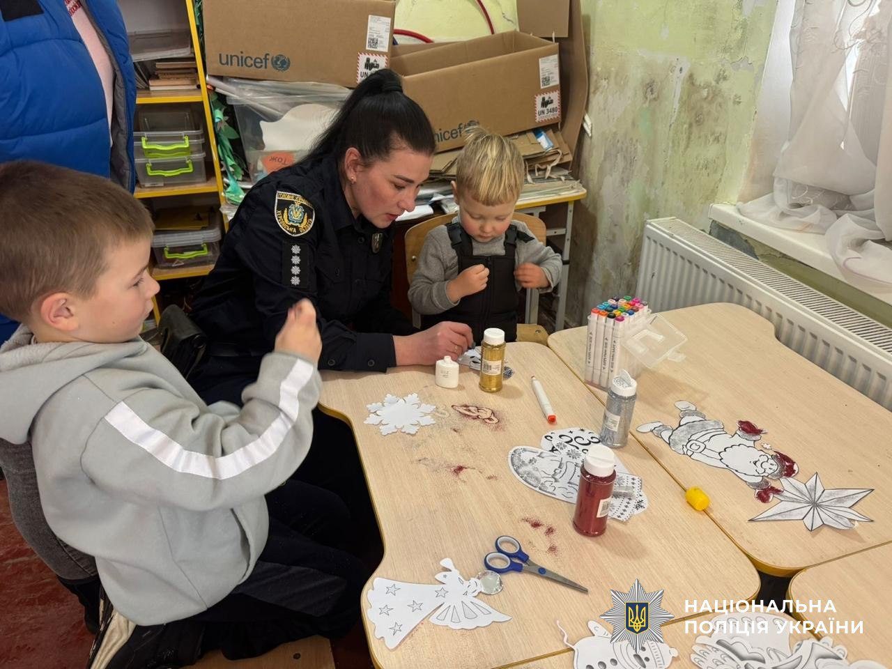 Малеча з великим ентузіазмом виготовляла ялинкові прикраси та святковий декор для вікон із зимовими та різдвяними мотивами. Кожна сніжинка, ялинкова іграшка чи різдвяна зірочка наповнювалися дитячими мріями та щирими емоціями. Разом із поліцейськими діти прикрашали простір, створюючи теплу, святкову атмосферу, повну світла та радості.