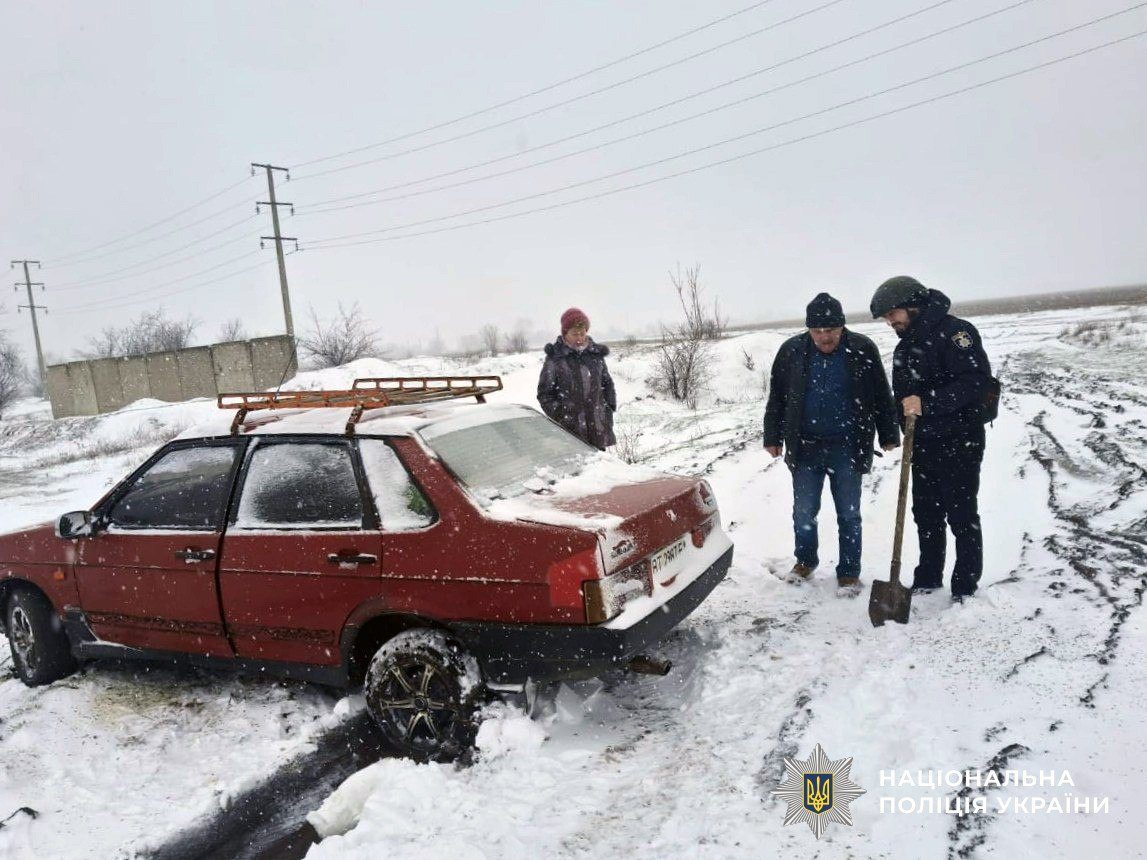 У Херсонській області через снігопад ускладнився рух на автошляхах. У зв’язку з погодними умовами на допомогу водіям вийшли працівники поліції, які забезпечують безпеку дорожнього руху та надають необхідну допомогу.