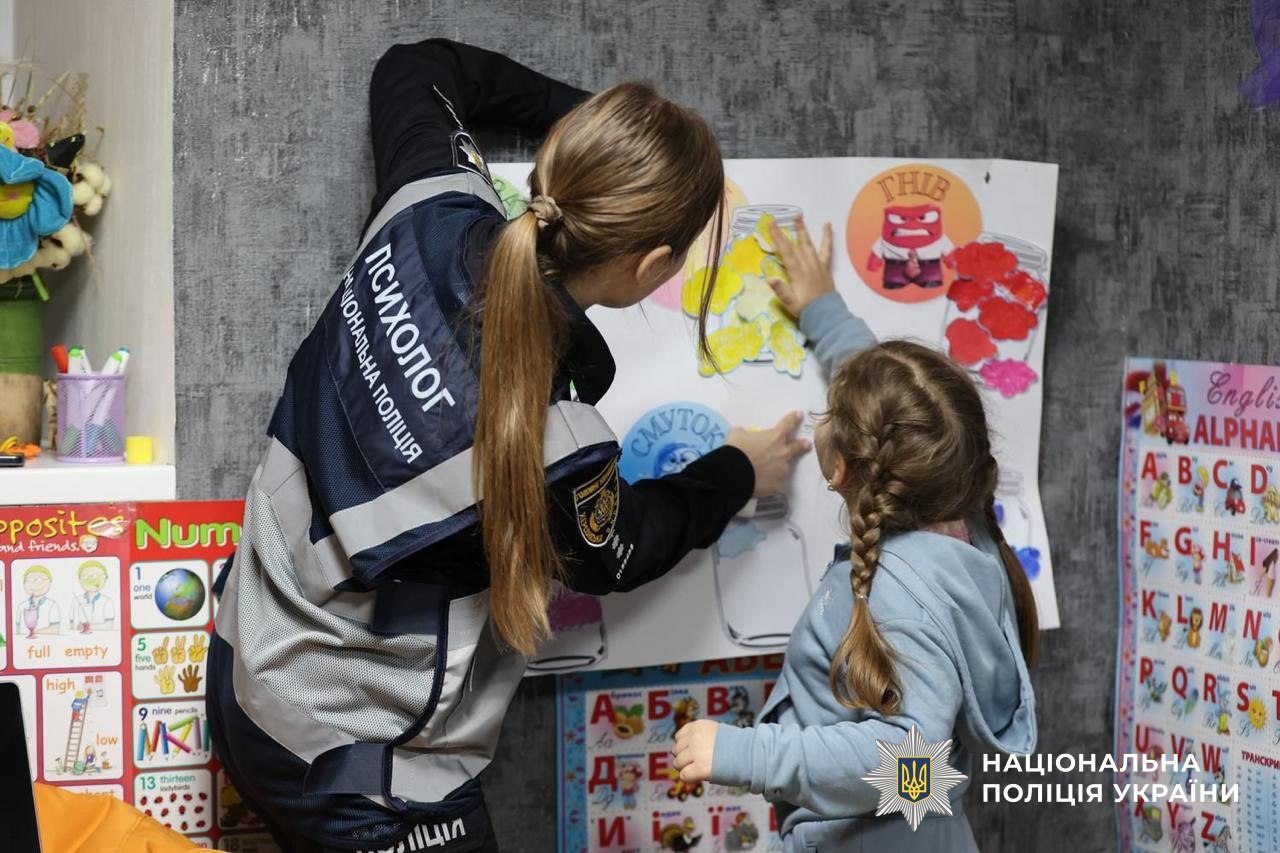 В освітньому центрі «Змістовно» відбулася арт-терапія для дітей. Психологині відділу психологічного забезпечення поліції Херсонщини організували захід «Емоції в моєму житті» для дітей поліцейських, зокрема тих, чиї батьки отримали поранення під час служби.
