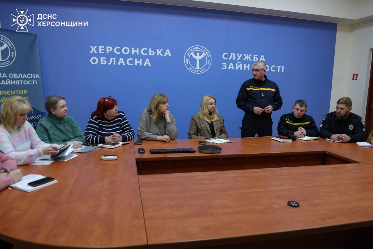 У Херсоні провели робочу зустріч щодо підтримки ветеранів. Представники Головного управління ДСНС України спільно з колегами з Національної поліції та Національної гвардії зустрілися з керівництвом обласного та міського центрів зайнятості в рамках державної ветеранської політики.