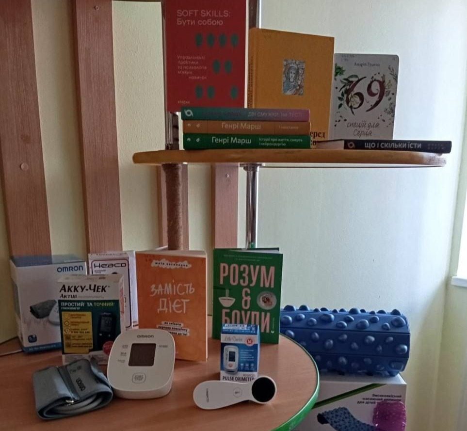 Тепер у бібліотеці облаштовано “здоровий простір”, де відвідувачі можуть контролювати артеріальний тиск, вимірювати рівень кисню в крові, перевіряти рівень цукру та користуватися масажним килимком для релаксації та покращення самопочуття.