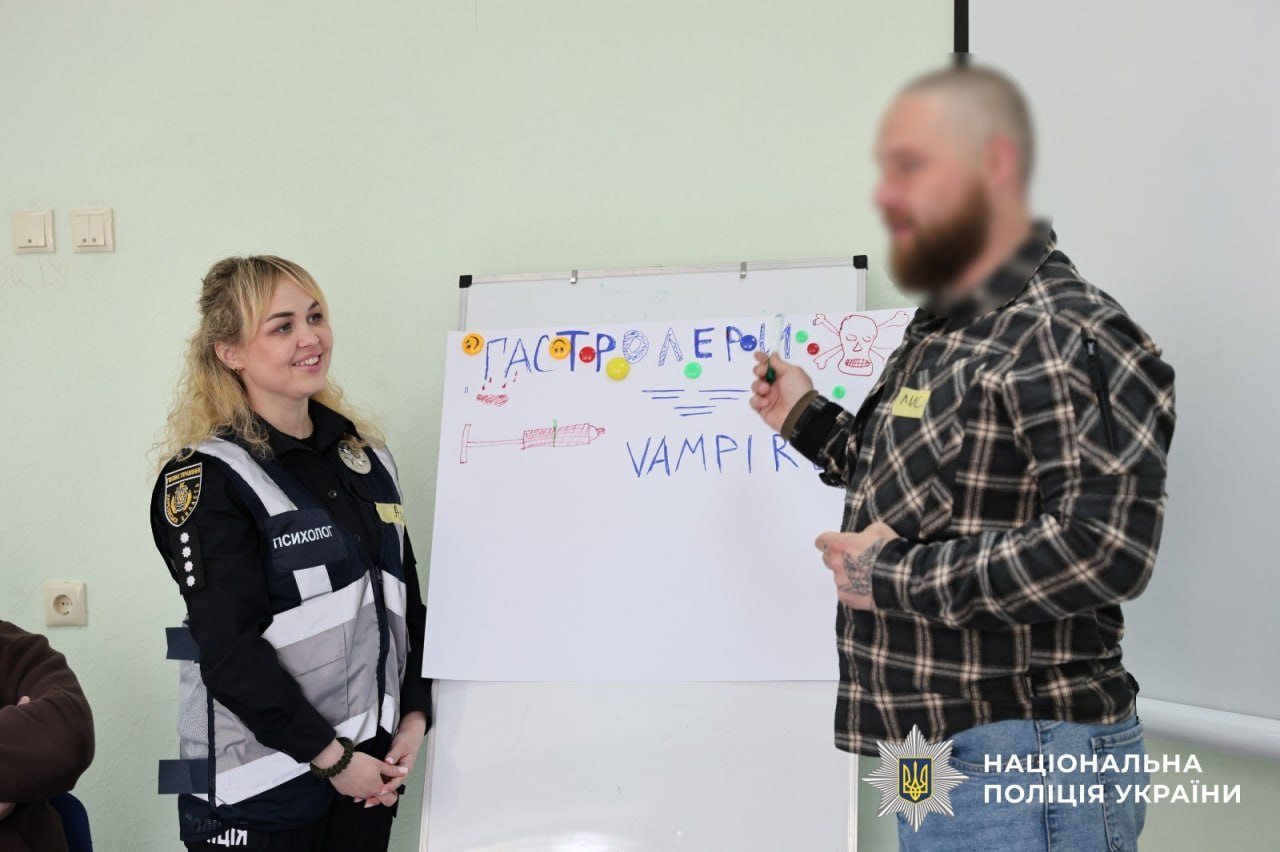 Для працівників спецпідрозділу поліції Херсонської області провели заняття в межах проєкту «Пункт психологічних практик», спрямоване на відновлення після служби у найгарячіших точках.