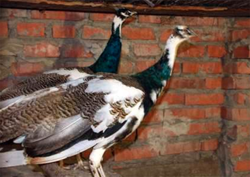 Это самец и две самки одного из видов павлинов, представителей которого до сегодняшнего дня здесь не имели.