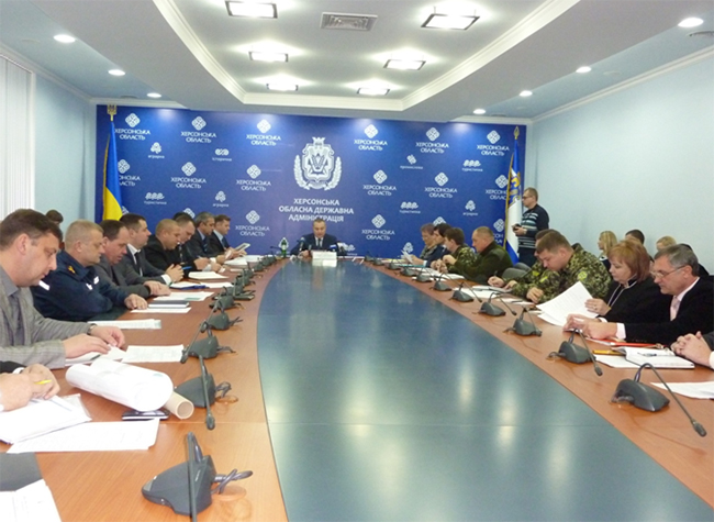 На снимках: заседание Совета обороны Херсонщины; в раздевалке Херсонской ОГА уже приготовлен «дежурный» траурный венок с обезличенной надписью «Воину-герою от Херсонской облгосадминистрации».