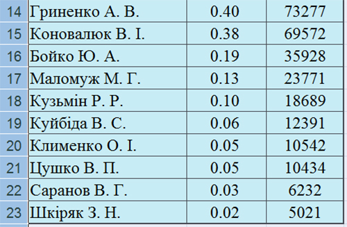 Шостий – Михайло Добкін – 3,03%, 546 138.