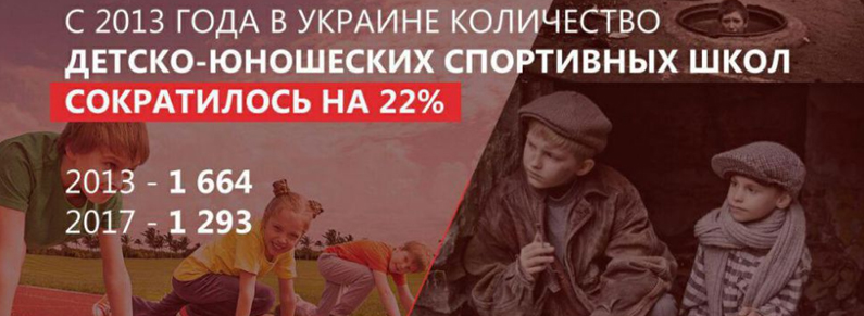 С 2013 по 2017 в Украине стало на 22% детско-юношеских спортивных школ меньше. В 2013 их было 1 664, в 2017 осталось 1 293 и сокращение продолжается.