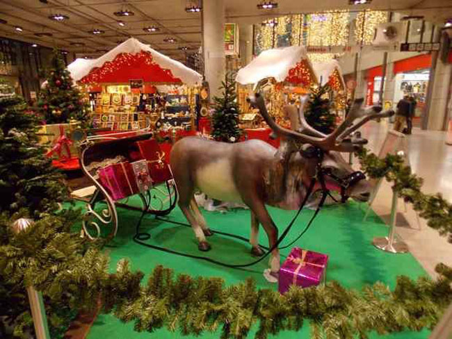 В зале, что характерно, стоит... джип. Его продают. Прямо посреди зала, на постаменте, рядом с синей ёлкой. Джип хороший, тёмно - красный, блестит. Купил бы, да ни времени, ни денег нет.