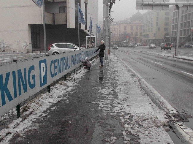 На площади и улице - что тебе отдалённый райцентр на Кировоградщине зимой. Тоска, запустение, убожество, на скамейках - полуметровый лёд. Асфальт тоже во льду. Всё погнутое, ржавое, конченное - ну короче как у нас.