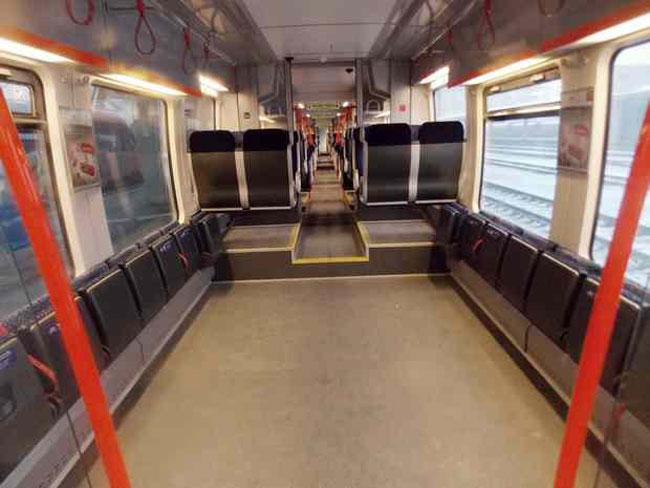 С виду - поезд будущего. Внутри тепло, светло, чисто, сидений немного, они обиты чем - то наподобие бархата. Туалет - несоразмерно большой, чистый, как в хорошем отеле. Пахнет хорошей туалетной водой.