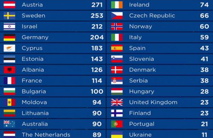 К тому же - позади нас остались такие страны, как Нидерланды, Сербия, Австралия, Венгрия, Словения, Испания, Великобритания, Финляндия и сама «хозяйка-организатор» конкурса - Португалия.