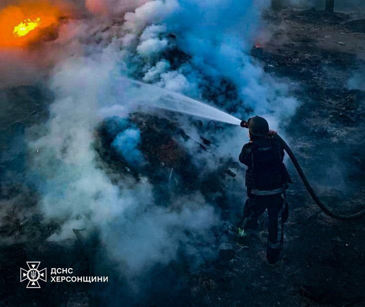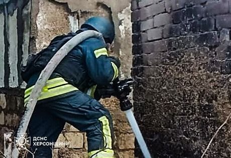 У Херсонському районі внаслідок ворожих атак зайнялися господарчі споруди та суха рослинність у приватному секторі.