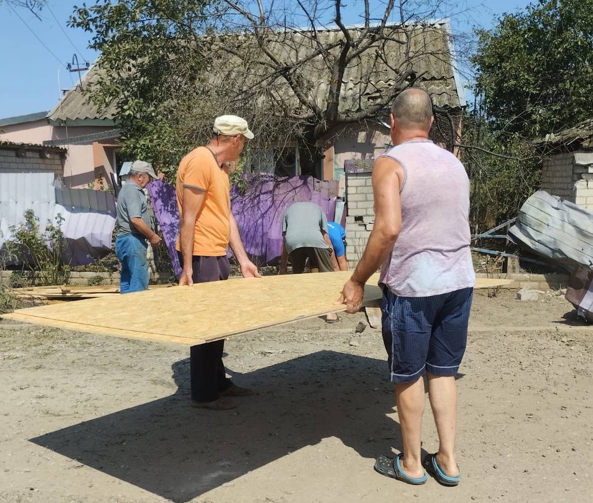 Для допомоги постраждалим жителям Херсонська міська військова адміністрація спільно з Наддніпрянським старостатом та КП «Наддніпрянка» організували доставку і видачу ремонтних матеріалів. Людям надали 25 плит ОСБ та 0,5 кубометра дощок для відновлення осель.