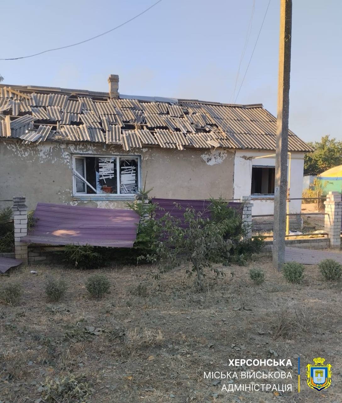 Обстріл пошкодив понад 20 будинків у селищі, повідомила Херсонська МВА.