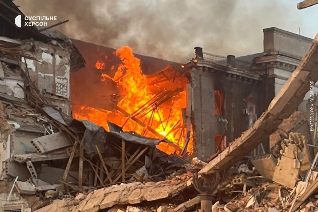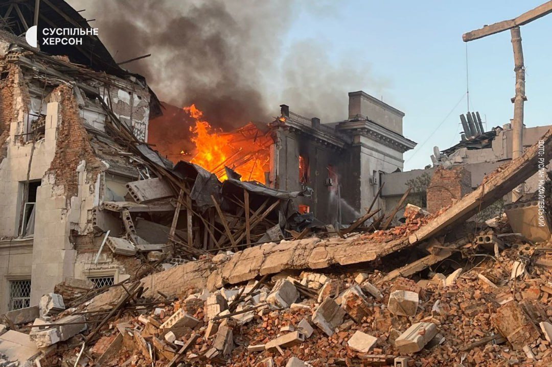 Вчора російські війська знову обстріляли Херсон. Внаслідок ворожої атаки загорілася будівля Херсонської обласної державної адміністрації.