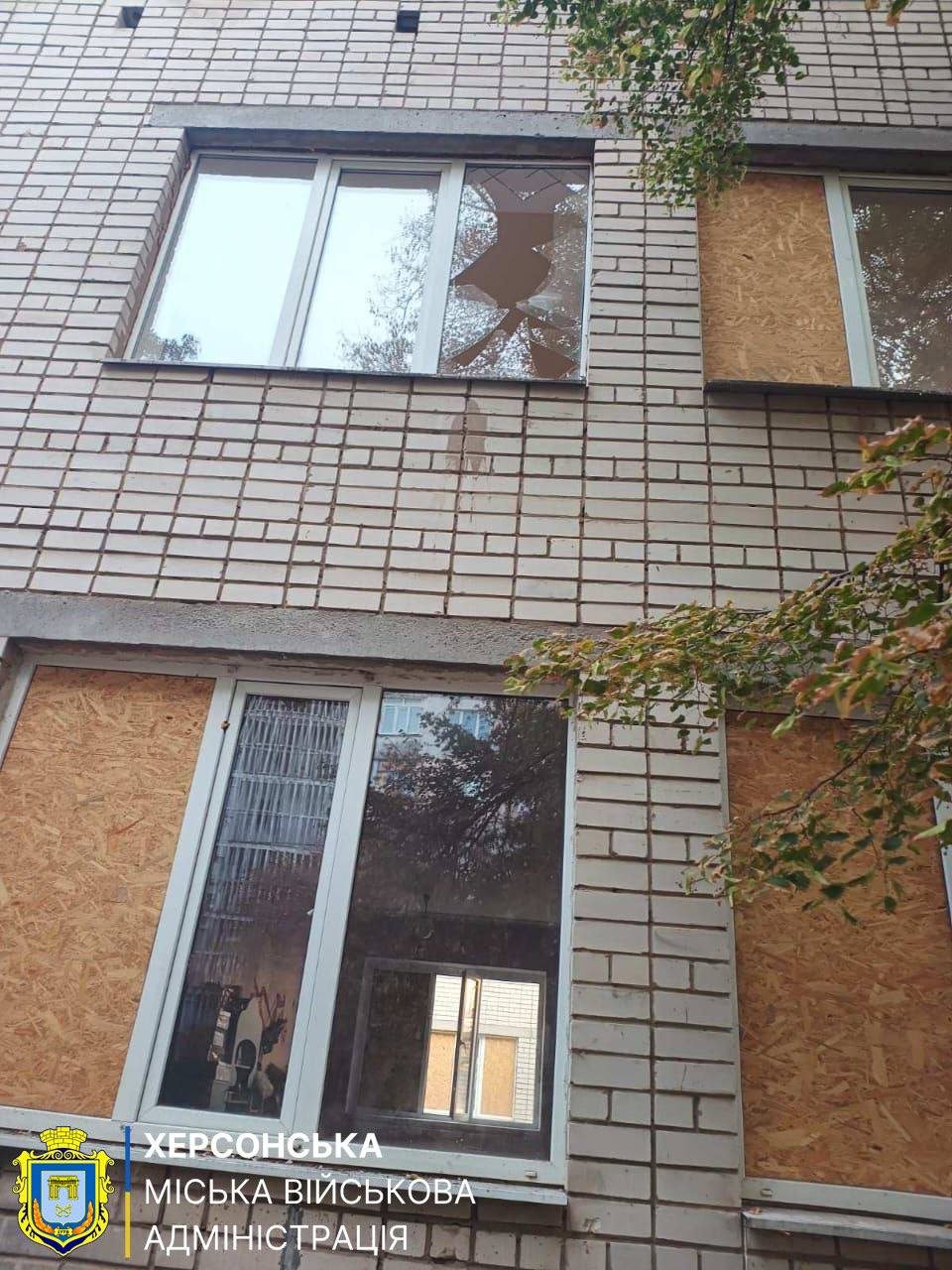 Наслідки обстрілів задокументовані на фото Херсонської міської військової адміністрації.