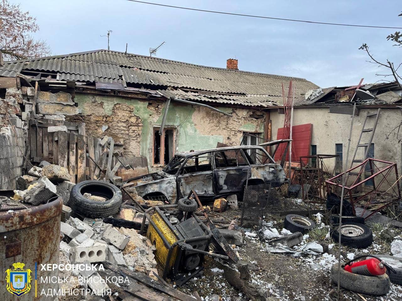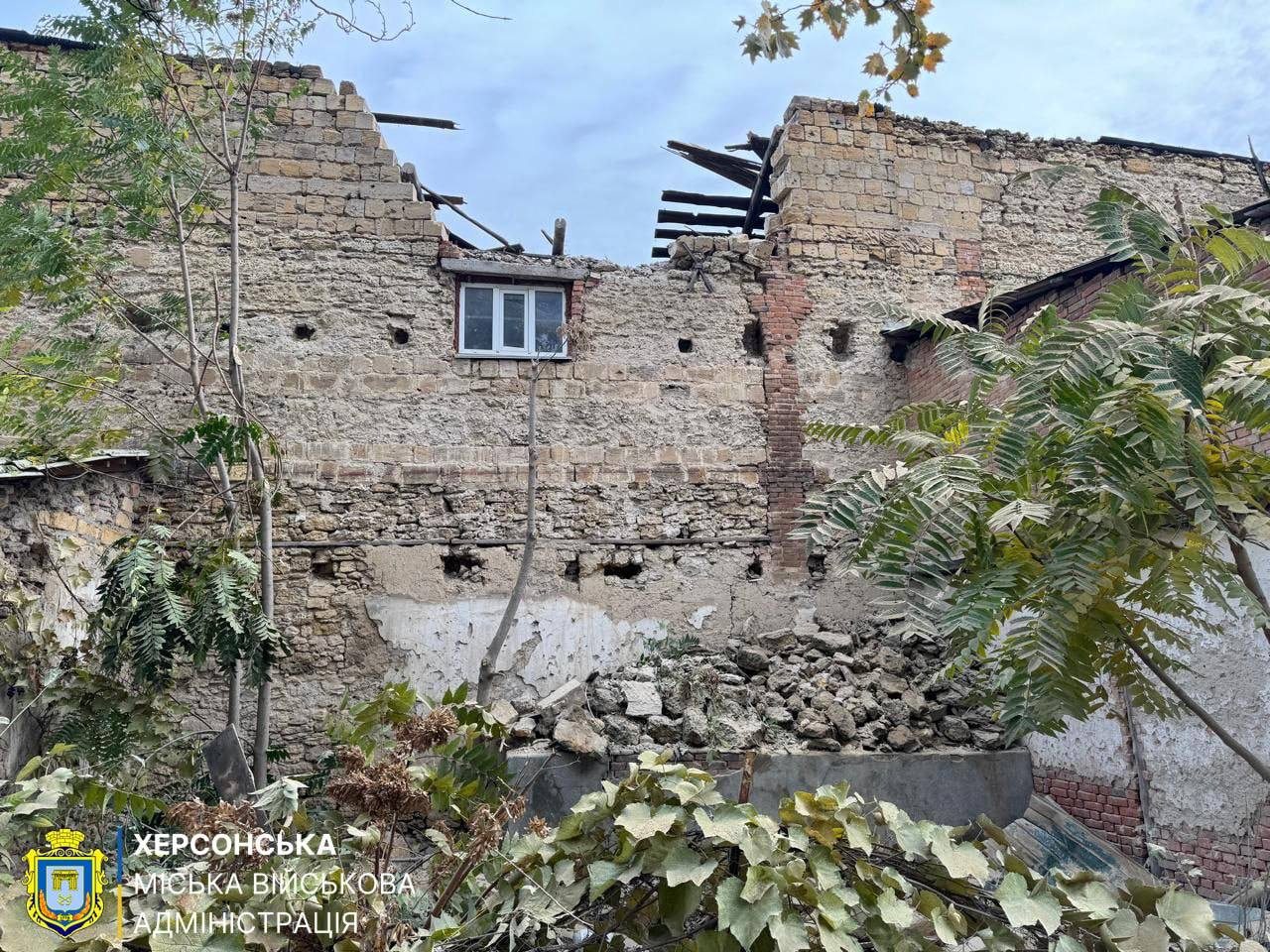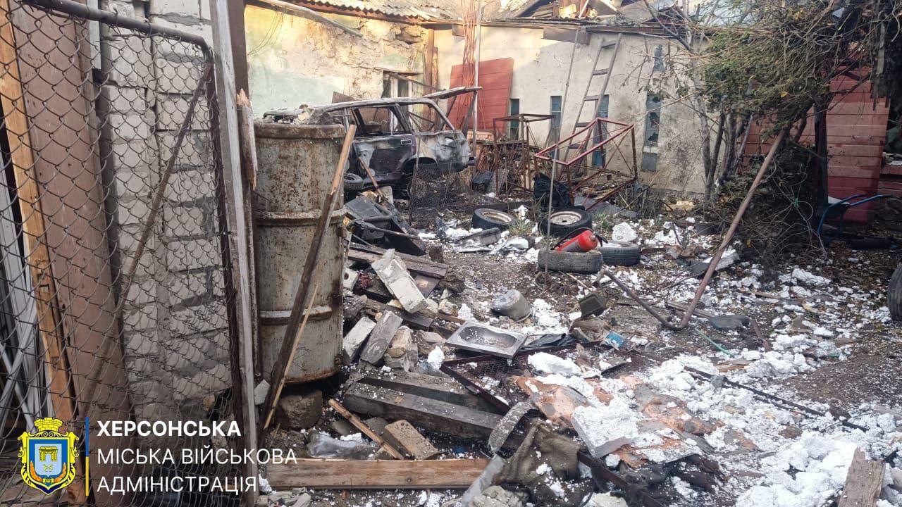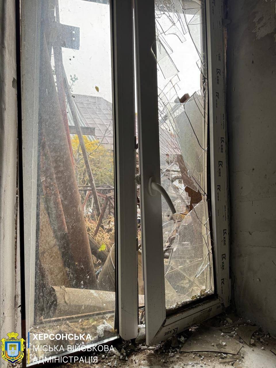 Фото з наслідками чергового обстрілу оприлюднила Херсонська міська військова адміністрація.