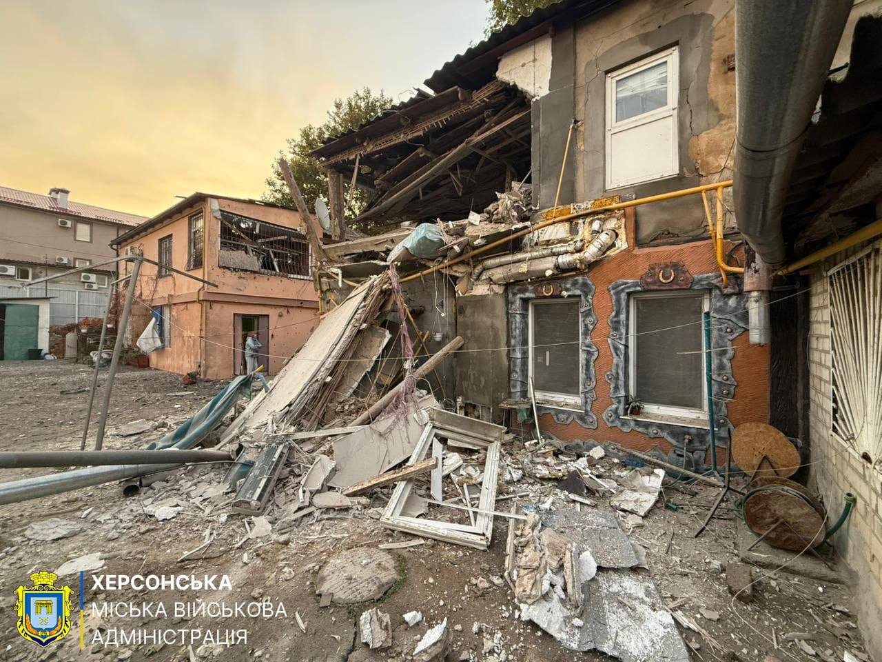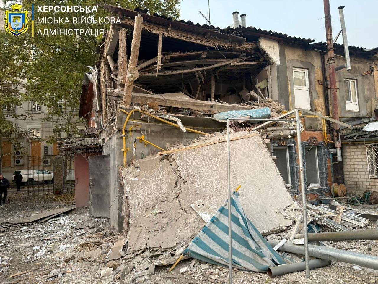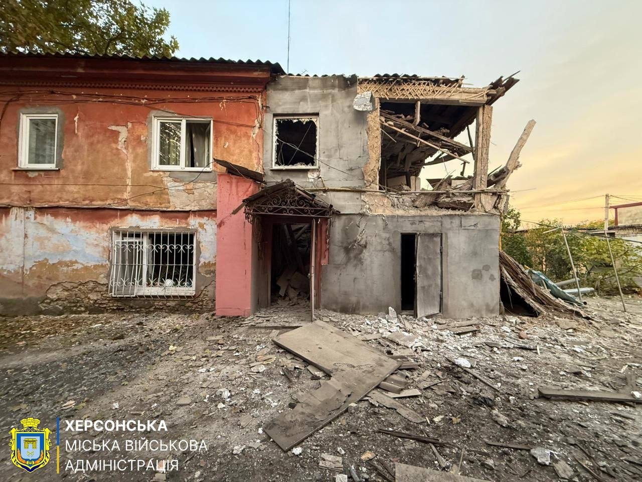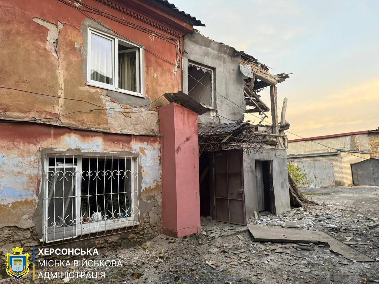 Фото з наслідками чергового обстрілу оприлюднила Херсонська міська військова адміністрація.