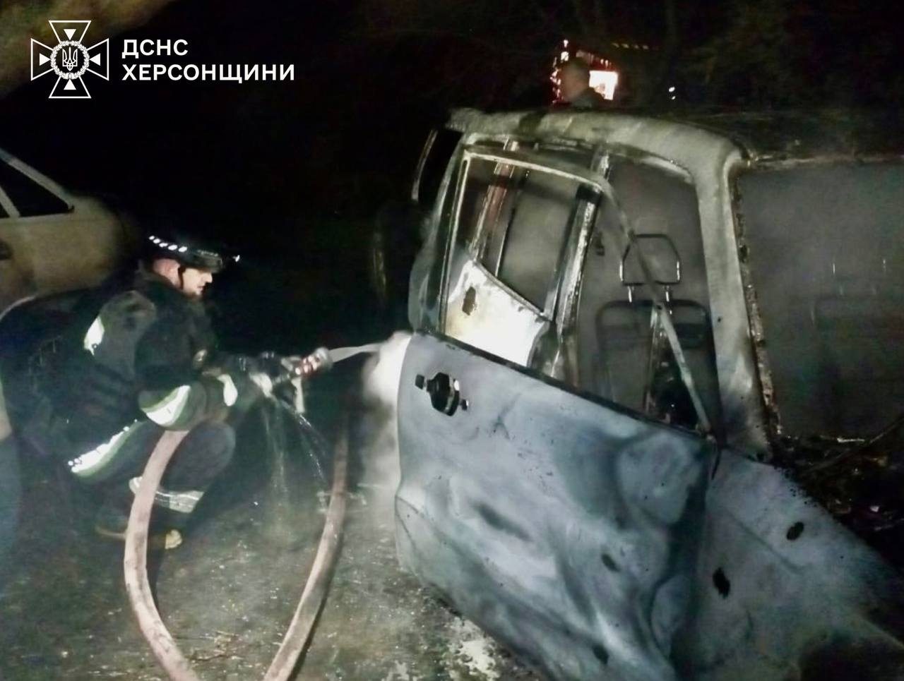 Уночі в селищі Нововоронцовка Бериславського району виникла пожежа двох легкових автомобілів. Про загорання повідомили до Служби порятунку, після чого на місце оперативно прибули рятувальники.