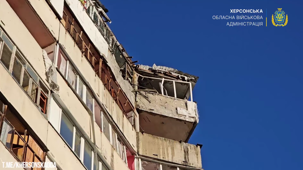Сьогодні, 1 січня, зранку російські війська здійснили атаку з ударного безпілотника по багатоповерховому житловому будинку в Центральному районі Херсона.
