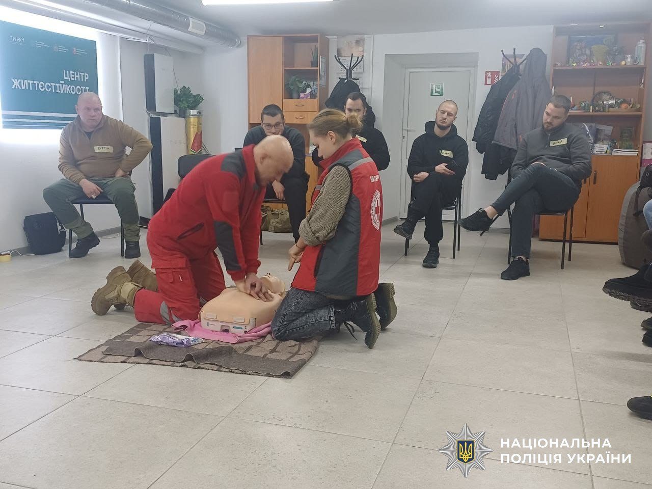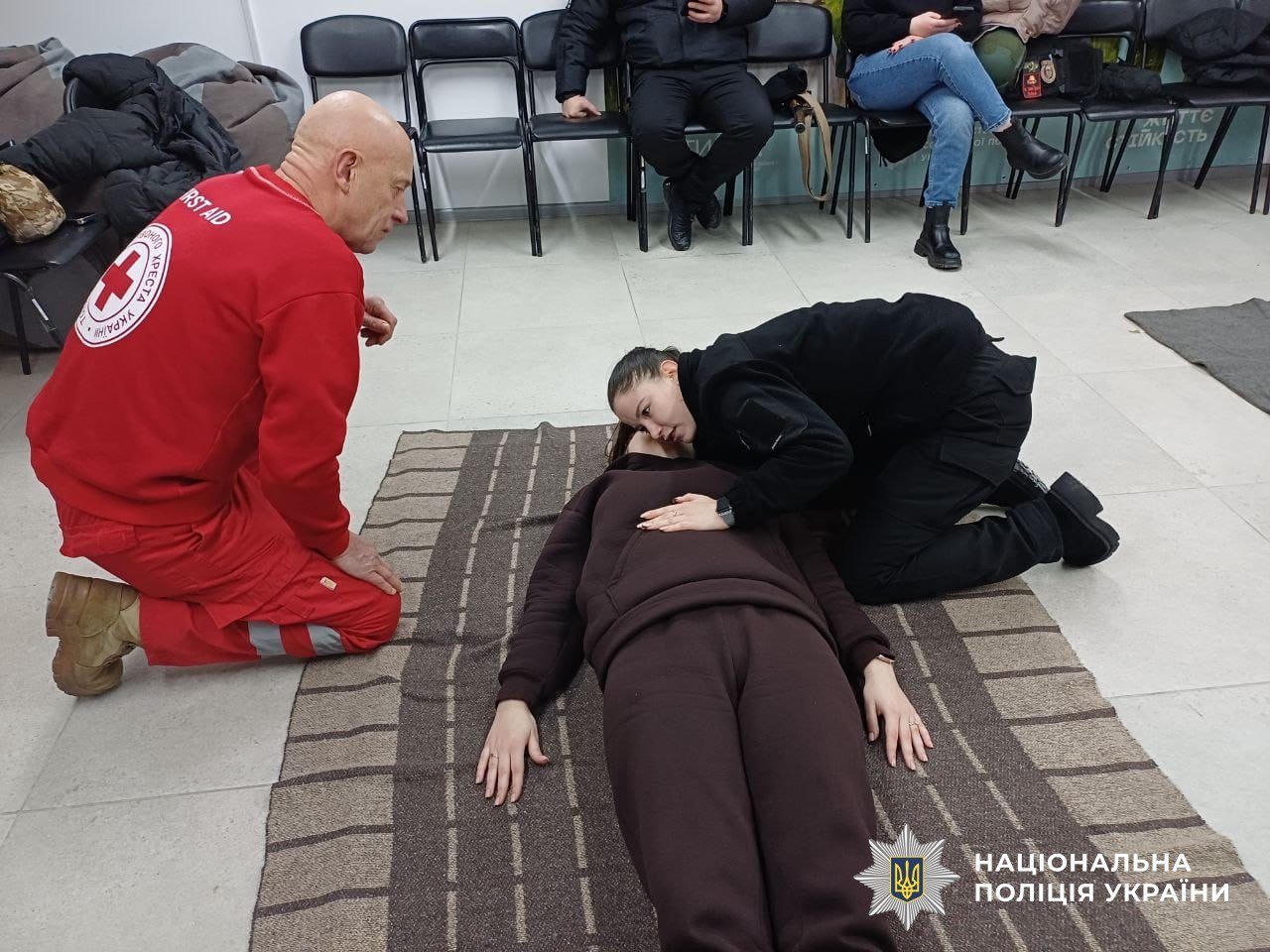 Тренінги проводяться у безпечному просторі за участі представників Товариства Червоного Хреста України. Поліцейські відпрацьовують алгоритми дій під час масованих обстрілів, навчаються зупиняти критичні кровотечі, застосовувати турнікети, проводити серцево-легеневу реанімацію, евакуювати поранених і діяти злагоджено в команді.