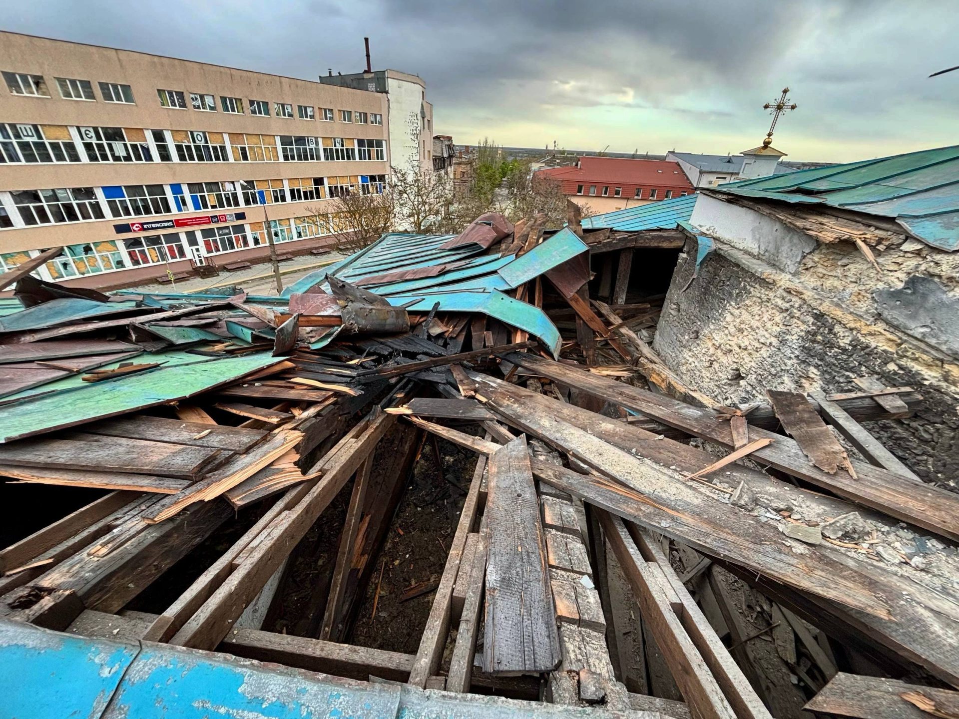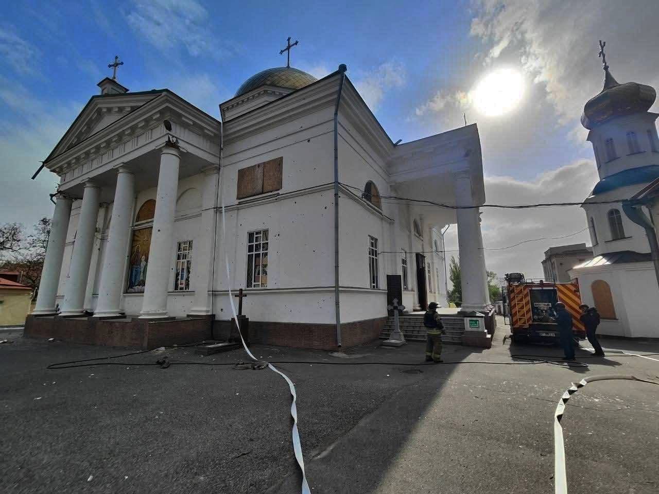 Окрім собору, серйозно постраждала й розташована поруч нежитлова будівля - вона фактично вигоріла внаслідок обстрілу.