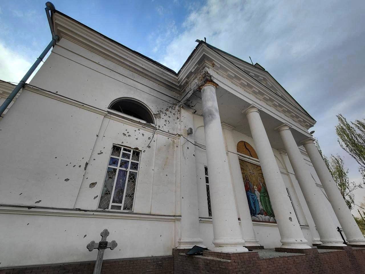 Учора, 26 квітня, російські війська вкотре обстріляли центральну частину Херсона. Внаслідок атаки зазнав пошкоджень Свято-Духівський кафедральний собор.