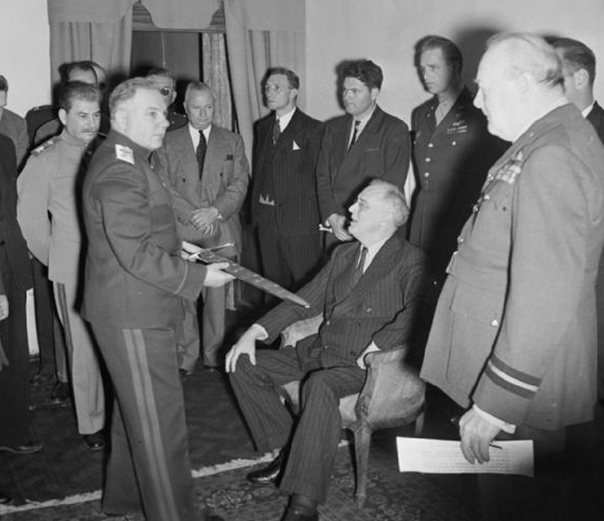 Окончательное решение об открытии западного театра боевых действий в Европе было принято в ходе Тегеранской конференции в конце ноября – начале декабря 1943 г. Огромное влияние на процесс переговоров оказали блистательные победы советской армии на Волге и Курской дуге. В начале конференции У.Черчилль от имени английского короля вручил руководителю советской делегации «меч Сталинграда». Операция получила кодовое название «Оверлорд». Начать ее предполагалось на севере Франции в мае 1944 года.
