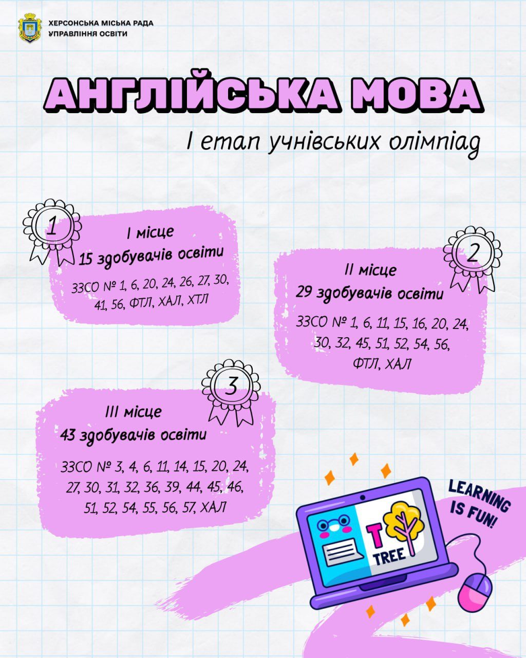 У закладах освіти Херсонської міської територіальної громади завершився І етап Всеукраїнських учнівських олімпіад з хімії, іноземних мов та інформатики.
