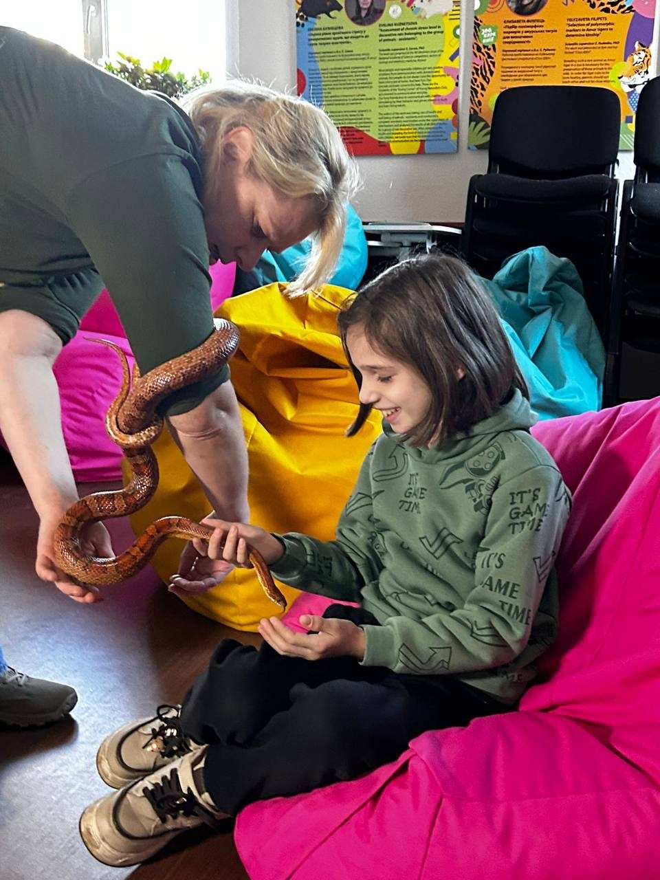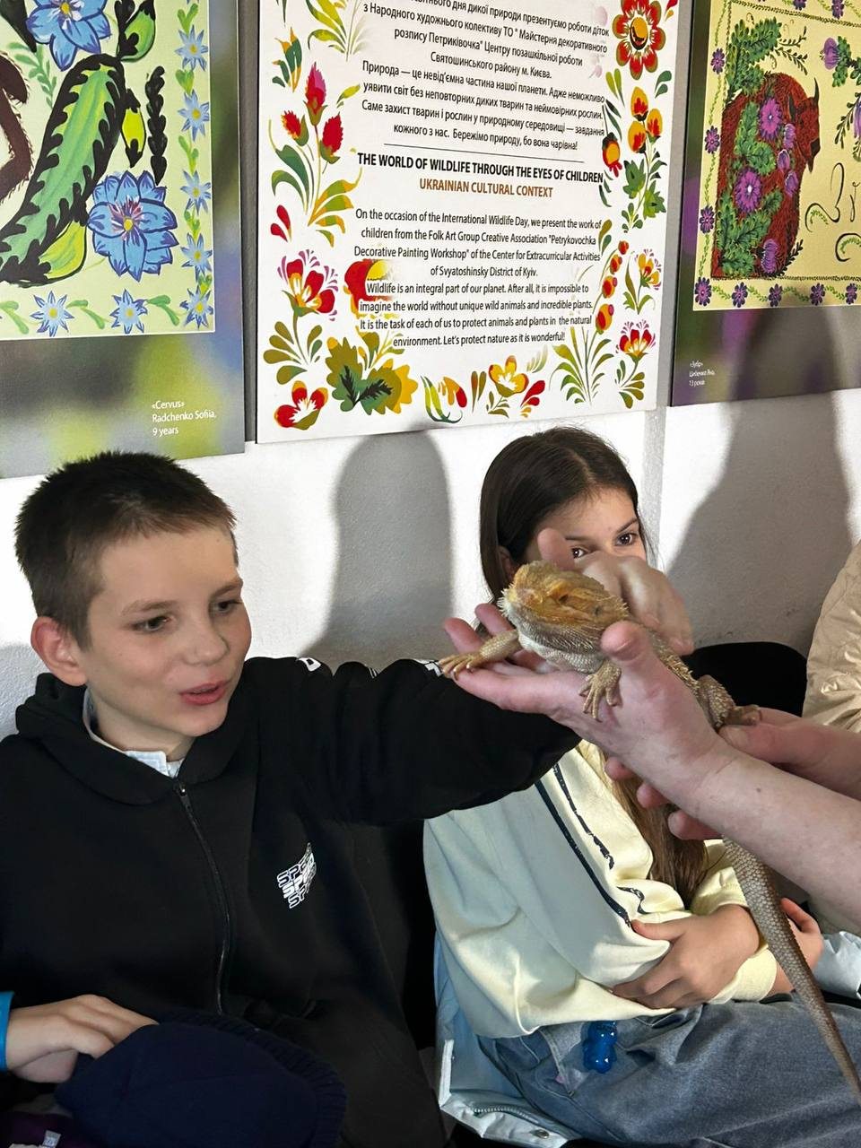 Першою частиною програми стала інтерактивна зустріч «Добрий палочник», де діти змогли ближче познайомитися з екзотичними тваринами. Такий формат став не лише цікавим, а й терапевтичним - спілкування з тваринами допомогло малечі відволіктися від буденних переживань.