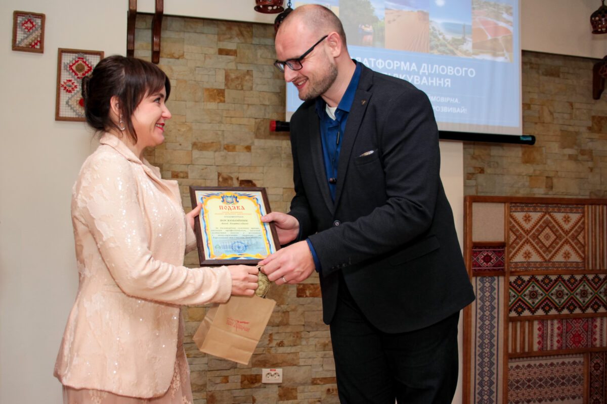 У рамках платформи ділового спілкування відбулася церемонія нагородження найактивніших діячів туристичної галузі Херсонщини. За активну діяльність у розвитку внутрішнього туризму, популяризацію туристичного потенціалу, сприяння створенню нових туристичних маршрутів, формування позитивного іміджу Херсонської області та з нагоди Всесвітнього дня туризму й Дня туризму в Україні було вручено грамоти, подяки голови Херсонської обласної державної адміністрації Юрія Гусєва, Херсонської обласної ради, особливі відзнаки управління туризму та курортів.