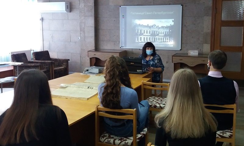 Во время знакомства с отделом краеведения студенты узнали много интересных фактов, а также имели возможность полистать старинные газеты, в которых и размещали свою рекламу гостиницы и рестораны Херсона более 100 лет назад.