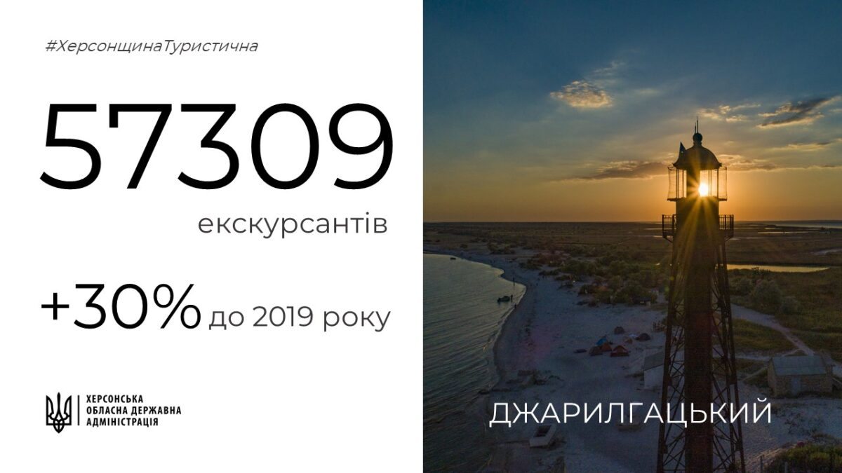 Еще одной известной локацией является Национальный природный парк «Джарылгачский». Гости, ехавшие к морю, обязательно хотели попасть на самый большой необитаемый остров в Европе. Гостей области манит чистый песчаный пляж и старинный маяк, окутанный легендами.