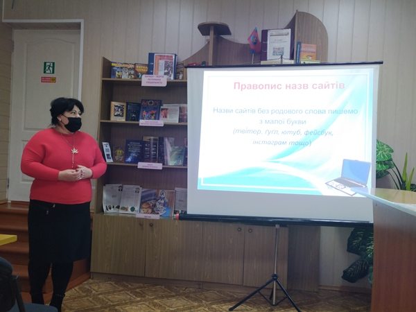 Заведующая отделом научной информации и библиографии и преподаватель курсов украинского языка Лилия Вижичанина осветила, как новое украинское правописание закрепило написание слов, связанных с названиями сайтов, социальных сетей, адресов электронной почты, названий единиц измерения количества информации.