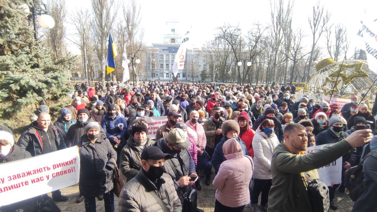 Работники торговли, физические лица-предприниматели протестовали против запланированного и объявленного городскими властями переноса торговых рядов. Перед зданием мэрии около полутысячи человек крайне решительно требовали объяснения данного решения лично мэром Херсона, угрожая в противном случае перекрыть центральную артерию города - проспект Ушакова.