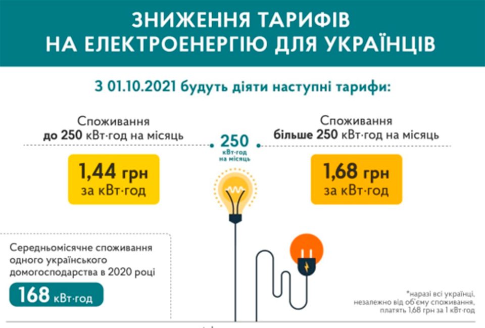 Кабинет министров на сегодняшнем заседании примет постановление, согласно которому тариф на электроэнергию для населения снижается до 1,44 грн за киловатт-час, если домохозяйства потребляют менее 250 киловатт-часов в месяц.