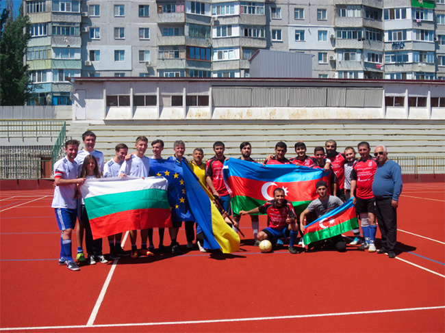 И вот поэтому, по инициативе Украинской Миротворческой Школы, азербайджанская и болгарская общины города Херсона 14 мая 2016 года провели товарищеский футбольный матч, посвященный Дню Европы на новом стадионе в микрорайоне Корабел.