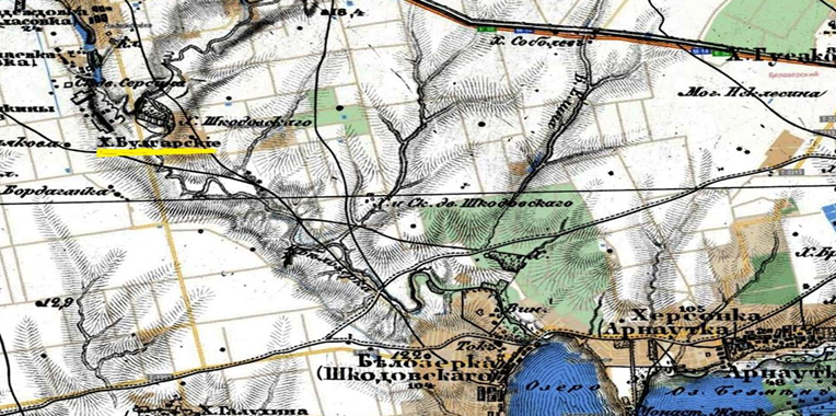 Отдельные болгарские семьи все же обосновались в аграрной сфере. Среди болгарских поселений сельскохозяйственной округи Херсонщины следует отметить «Болгарские хутора», которые отмечены на военно-топографической карте Российской империи, созданной в период 1846-1863 гг. под руководством Ф.Ф. Шуберта и П.А. Тучкова.