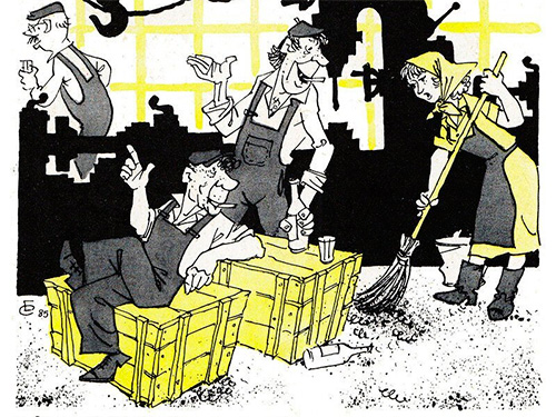 В сообщениях местных газет посвященных пьянству лидирующие позиции занимали строители. Вот одно из типичных, и довольно сдержанных сообщений об антирелигиозном вечере у строителей от 13 января 1926 года. Экстренный выпуск приложения к херсонской газете «Червоний селянин» с легкой грустью констатирует: «На вечере присутствовали красноармейцы подшефной части. Общее впечатление портили лишь пьяные. Администрации клуба нужно обратить внимание и в будущем нетрезвых в клуб не пускать (подпись - А.Бабский)».