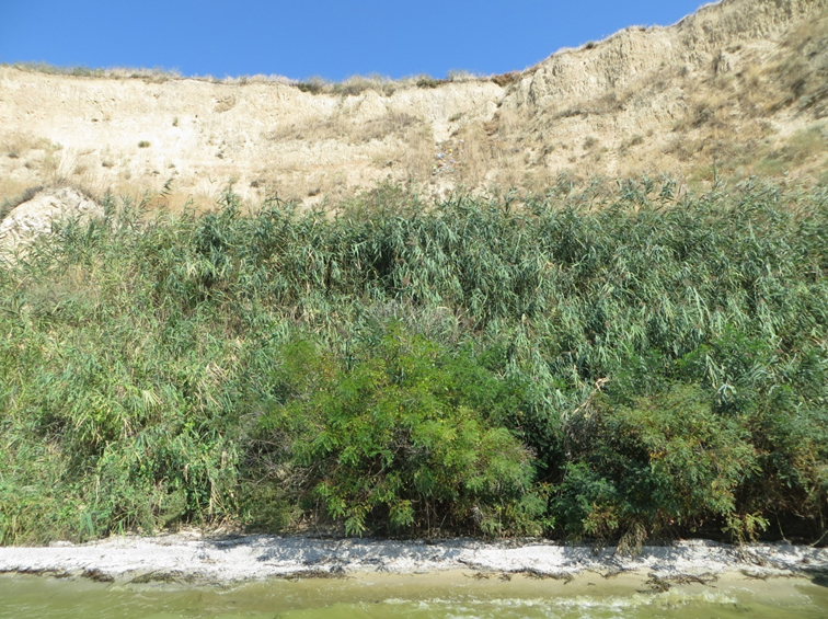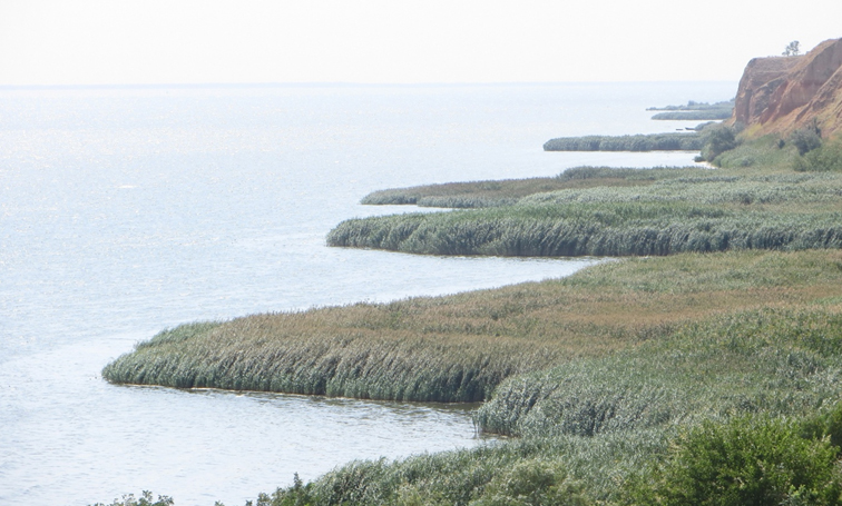 Але природа підказує рішення: скелі, від розмиву хвилями, можуть захищатися... очеретом, так би мовити, очеретяними хвилерізами. На світлині я зафіксував у селі Широка Балка вид берега у бік Станіслава: бачимо, як потужно захищають узбережжя очеретяні зарості!