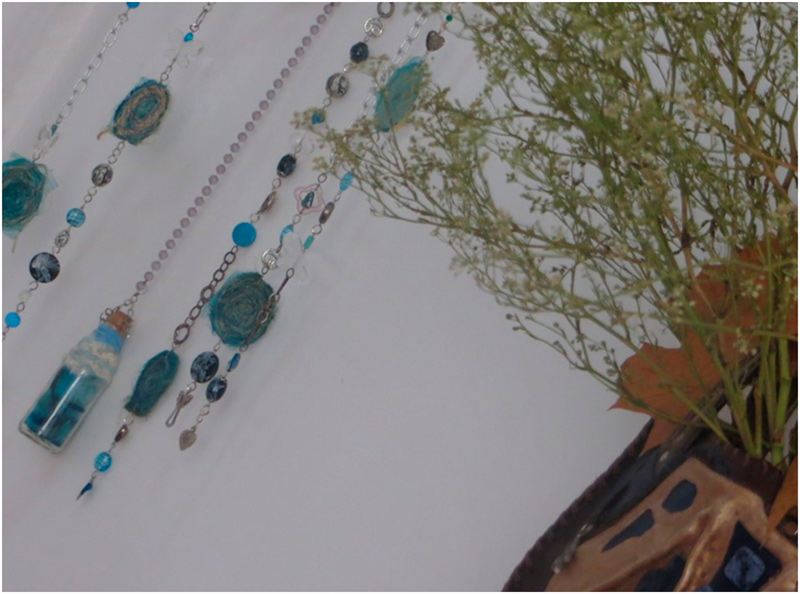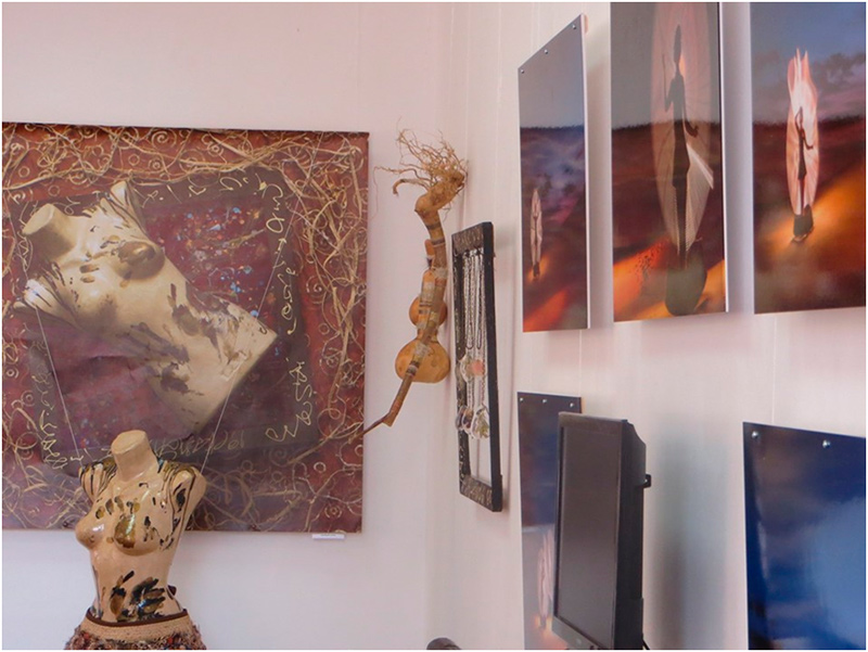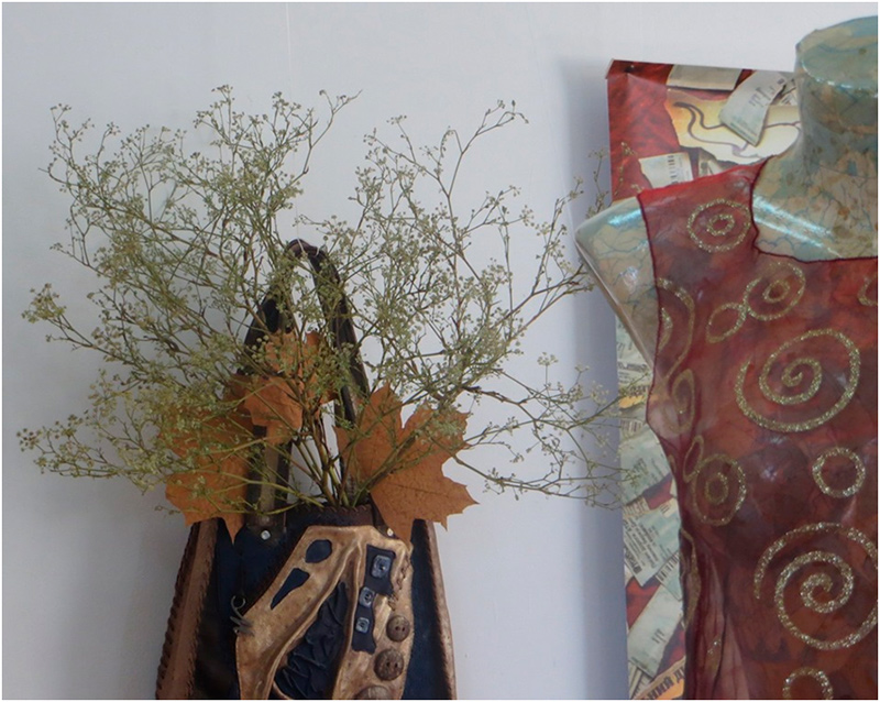 Знайомлячись із експозицією, не полишало відчуття театру. Авторського, самобутнього, фонтануючого незвичністю. Захоплює: в театрі пані Юлії грати може все – тканини, шкіра, біжутерія, мушлі, камінці, химерного вигляду сухі гілочки та корінці, мотки шерсті, навіть, здавалось би, випадкове – театральні квитки, вирізки зі старих журналів...