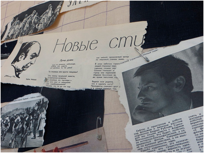 На виставці було багато притягальних об'єктів. Окрема кімната, мов тренувальний зал, для іграшок – «станів душі» художниці. Але мене особливо довго тримала ностальгійна інсталяція з журналів багаторічної давності. Тут і рядки-блискітки з Пабла Неруди, й Роберта Фроста, й Андрія Тарковського...