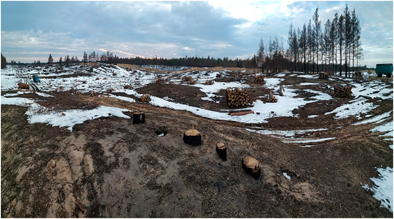 После пожара все еще пригодную, лишь слегка обгоревшую древесину начали выпиливать и продавать.