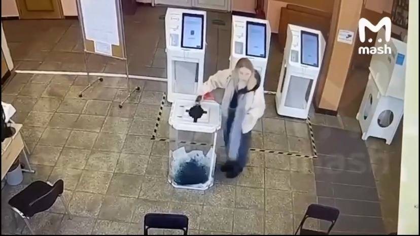 Вороже налаштовані на процес "голосування" громадяни рф обливають виборчі урни зеленкою, палять та підривають.