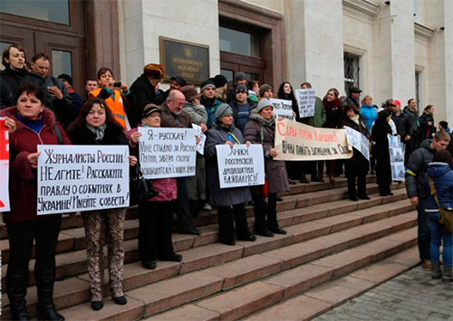 Російський триколор, який у минулі роки користувався деякою популярністю, став викликати відкрите презирство. Все, що пов'язане із російською державою та тамтешнім правлячим режимом, сприймалася негативно.