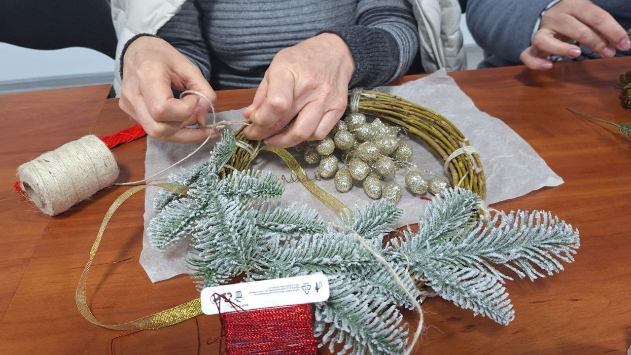 Крім того, у центрі провели майстер-клас із виготовлення різдвяних віночків. Під час створення цих символів домашнього затишку учасники закладали у них особисті сенси та надії.