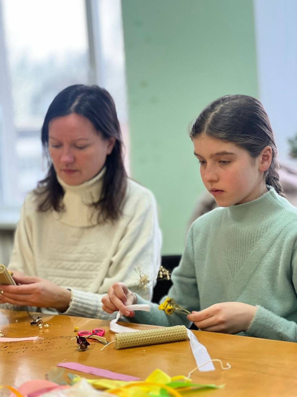У заході взяли участь дорослі та юні херсонські переселенці, які на кілька годин поринули у творчий процес. Учасники опановували техніку виготовлення свічок із натурального воску та спілкувалися у дружньому колі, обговорюючи різні теми.