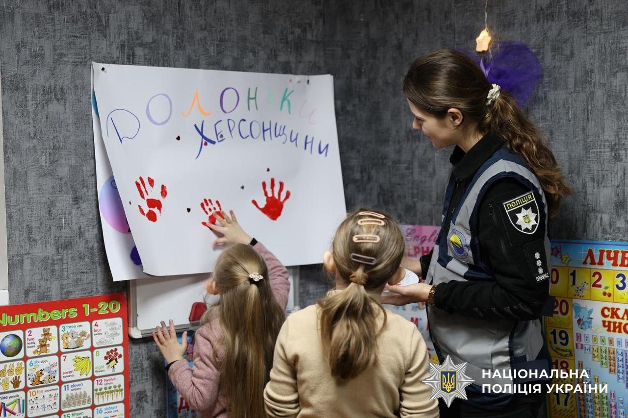В освітньому центрі «Змістовно» відбулася арт-терапія для дітей. Психологині відділу психологічного забезпечення поліції Херсонщини організували захід «Емоції в моєму житті» для дітей поліцейських, зокрема тих, чиї батьки отримали поранення під час служби.