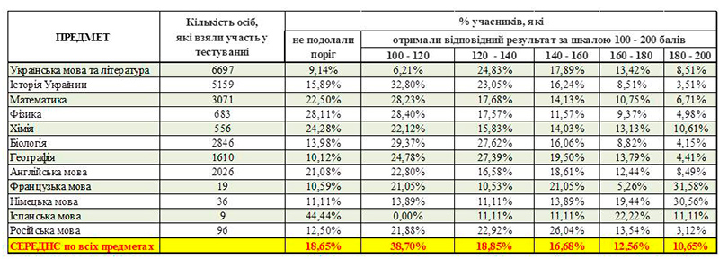 «Фізику» в Херсонській області «завалили» повністю – 25,51%, «Хімію» – 46,4%, «Біологію» – 43,35%... Деталі у таблиці: